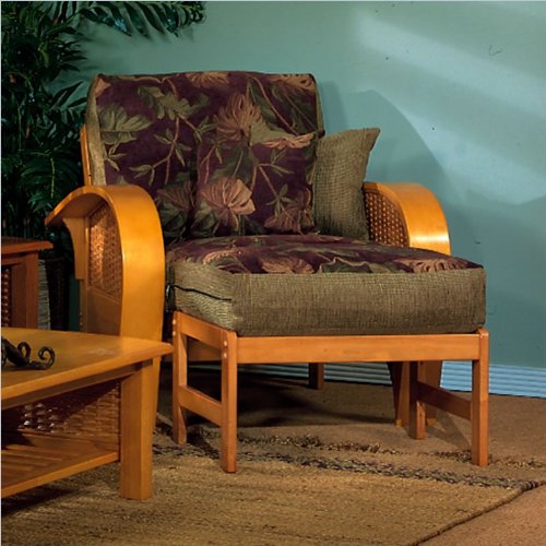This futon chair has a golden oak frame designed for strength and durability. The rattan wicker side paneling framed by a clean, curved arm creates visual interest. The comprehensive craftsmanship of this arm chair is evident throughout. This practical futon can turn your room setting into a comfortable, well-received space. Features: Golden Oak Finish Metal Wood Frame Furniture style futon Low profile armrest Cushions and upholstery made in the USA Specifications: Seating Dimensions: 36" W x 36" L x 25.5" H Sleeping Dimensions: 54.5" W x 36" L x 17" HSAVE NOW on the special offers below!